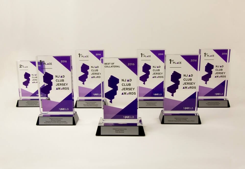 Kudos to our talented team members and client partners. Oxford won 13 awards at the 2017 ASTRA Awards, including the coveted Best in Show trophy for our 30th anniversary event invitation. The big night came just one week after taking home 12 awards at the 31st annual NJ Ad Club Jersey Awards.