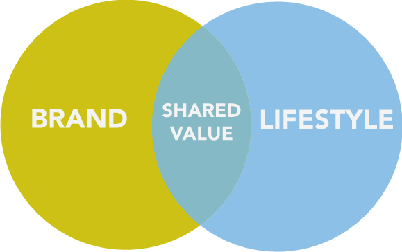 Shared Value is the intersection of your brand’s promise with your audience’s lifestyle. Once a brand has developed Shared Value with its audience, a loyalty to the brand is achieved that creates a bond similar to that of a close personal relationship, a bond that is tough to break. This methodology can also create Brand to Brand relationships that have the exact same attributes, creating partnerships that are mutually beneficial and equally as difficult to sever.